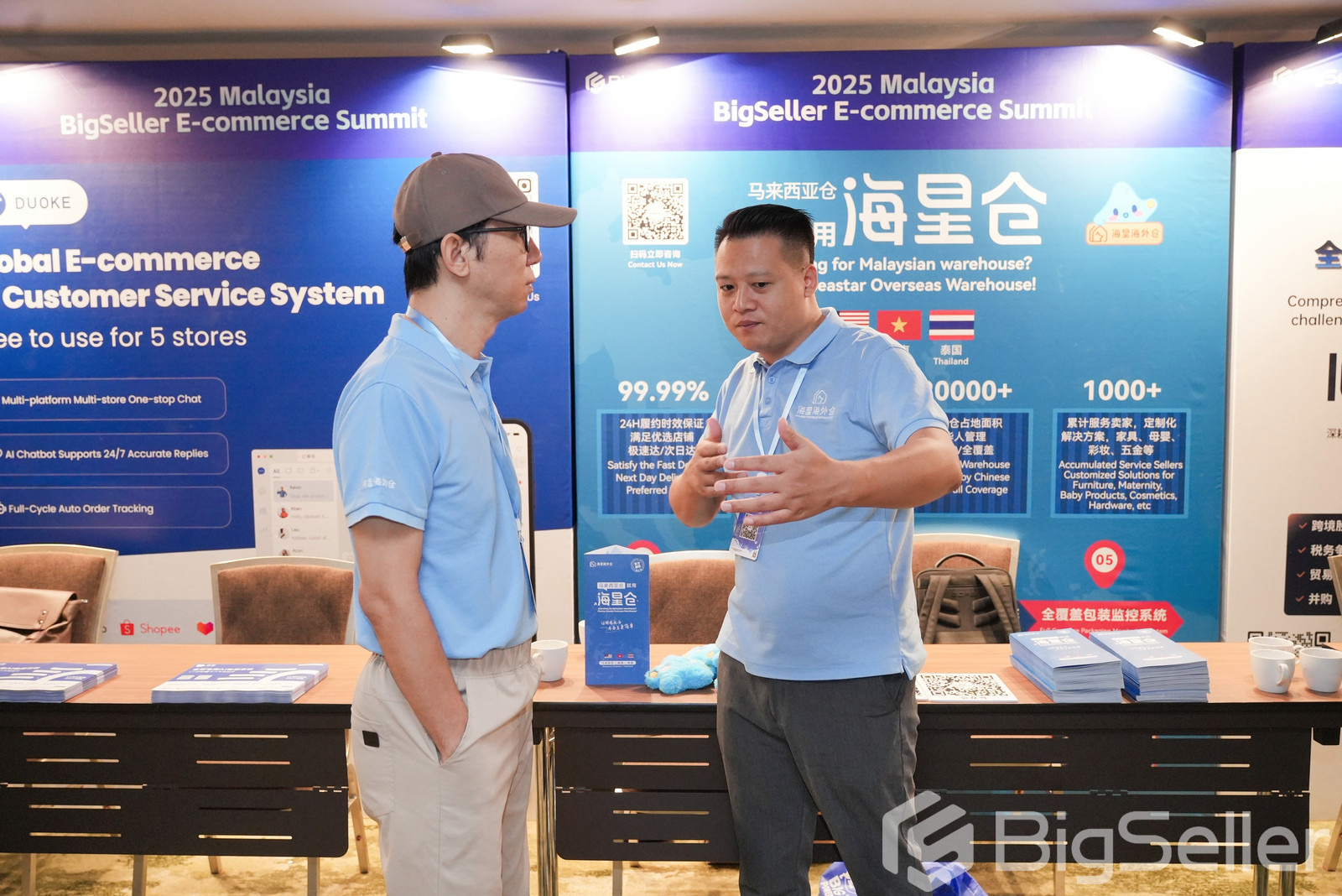 本次峰会汇聚超过500名东南亚电商从业者及TikTok、Shopee、Lazada三大平台官方代表,现场展位咨询火爆。峰会聚焦东南亚电商市场的最新趋势与实战策略,议程涵盖流量运营、支付创新、物流履约及合规管理等核心议题。TikTok马来西亚代理机构合作负责人、Shopee马来西亚华商负责人等机构高管带来了多场干货分享,为与会卖家提供了丰富的市场洞察与解决方案。 ![]() 海星海外仓深度参与本次活动,展位吸引卖家咨询,并在主题圆桌会谈中分享了应对马来西亚本土化挑战的深刻见解。 ![]() ![]() 01 展位咨询火爆,直击卖家物流痛点 会议期间,海星海外仓展位咨询热度持续高涨。众多跨境卖家就马来西亚市场的关键物流挑战,如时效保障、清关合规及大促仓储弹性,与海星团队进行了深入交流。海星现场展示了其针对马来西亚市场的服务优势。